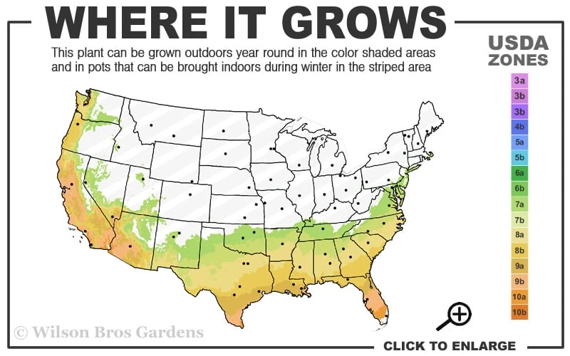 USDA Plant Hardiness Zones: 7a-10b  Find Your Zone